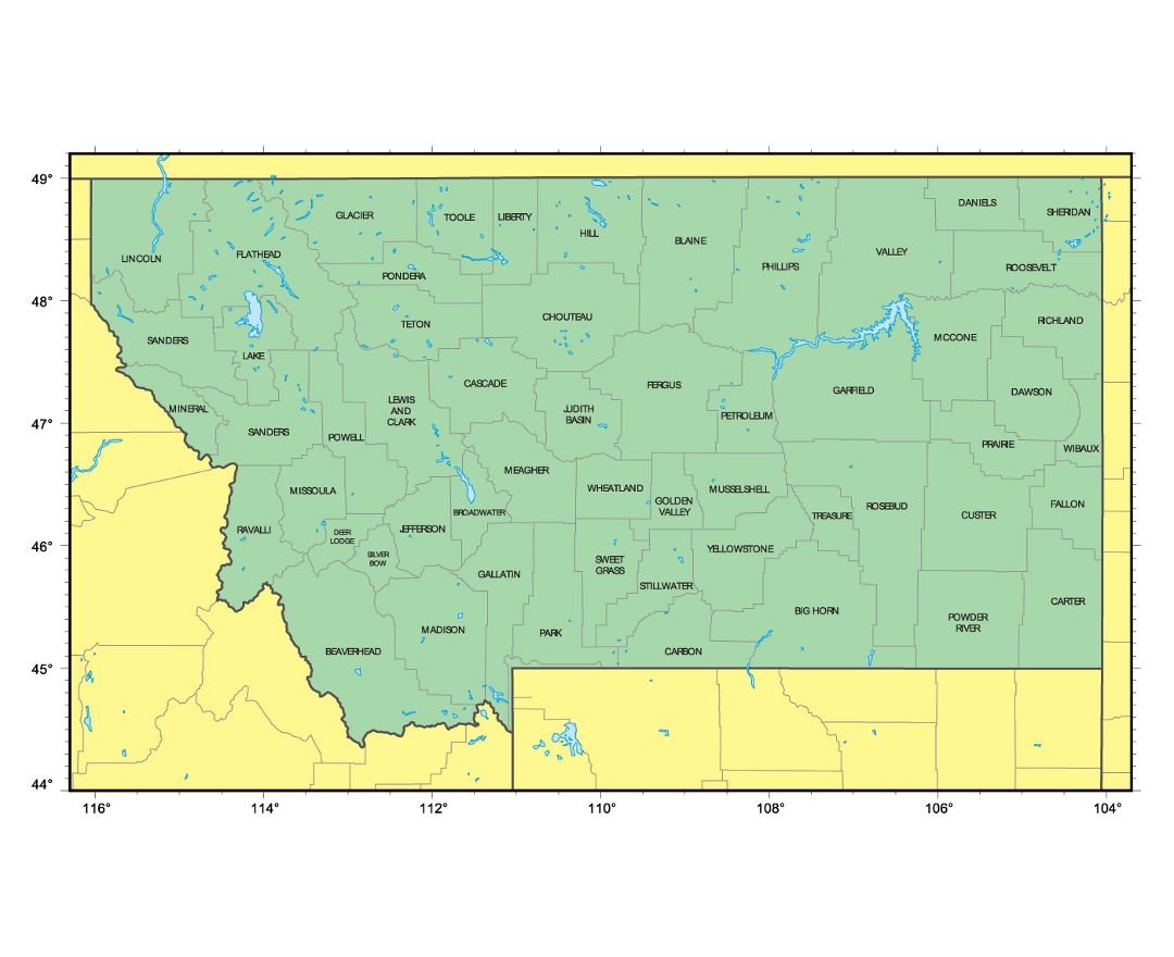 Montana is a state in the Western region of the United States. The state's name is derived from the Spanish word montana (mountain). Montana has several nicknames, although none official, including "Big Sky Country" and "The Treasure State", and slogans that include "Land of the Shining Mountains" and more recently "The Last Best Place". Montana has a 545-mile (877 km) border with three Canadian provinces: British Columbia, Alberta, and Saskatchewan, the only state to do so. It also borders North Dakota and South Dakota to the east, Wyoming to the south, and Idaho to the west and southwest. Montana is ranked 4th in size, but 44th in population and 48th in population density of the 50 United States. The western third of Montana contains numerous mountain ranges. Smaller island ranges are found throughout the state. In total, 77 named ranges are part of the Rocky Mountains. The eastern half of Montana is characterized by western prairie terrain and badlands.
